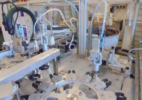 La linea è dotata di due piste, utilizzabili in alternanza, per l’assemblaggio di 4 modelli di chiusure a molla partendo da una matrice stampata.