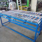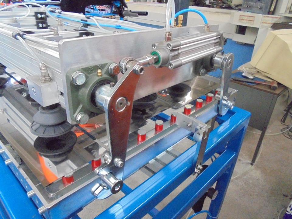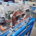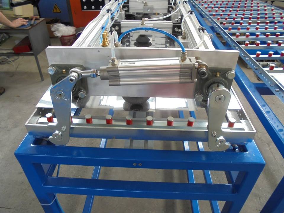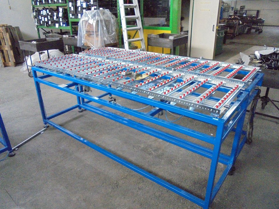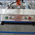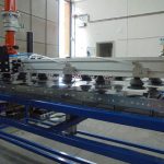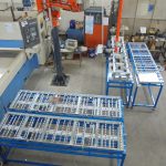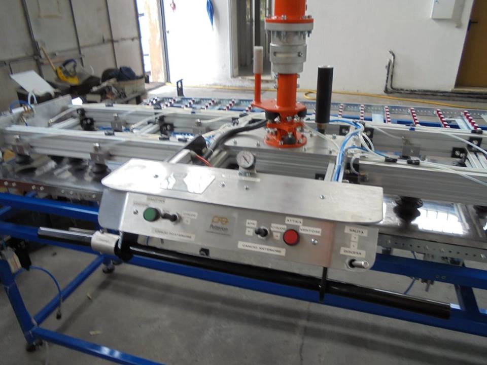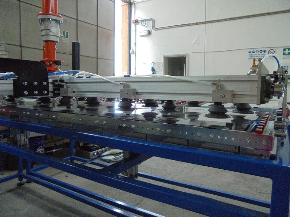 IL’attrezzatura è composta da 4 piani di asservimento lamiere ad un impianto laser.La movimentazione dei telai, sui quali sono posizionati i fogli di lamiera, avviene tramite un manipolatore dotato di pinza, specificatamente realizzata, e di ventose per il prelievo del prodotto.