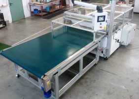 L’attrezzatura è composta da un tappeto per il convogliamento di materiale verso una patella pneumatica che gestisce lo scarico su dei contenitori.