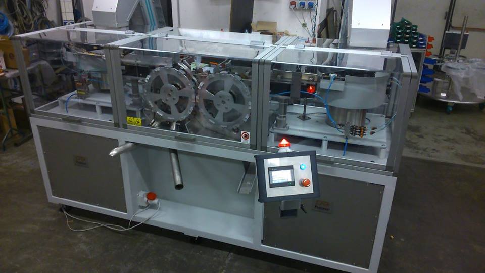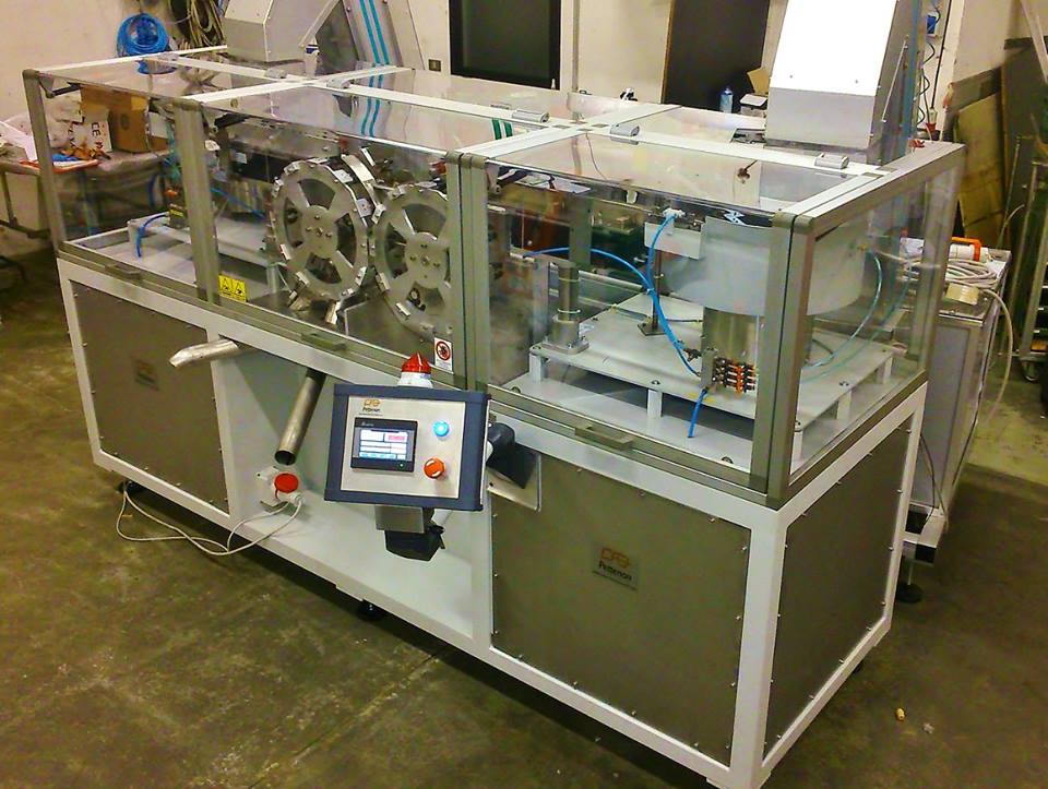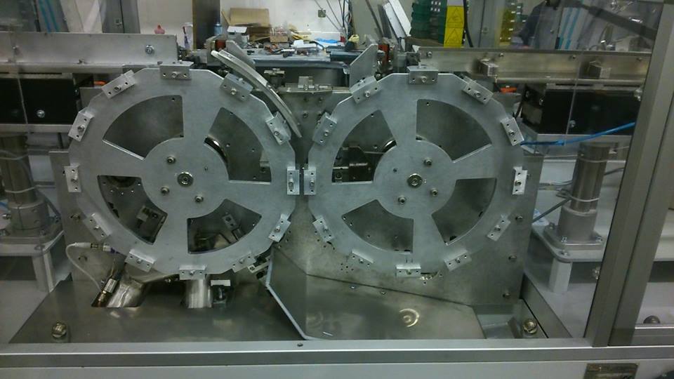 Unità completamente meccanica, con meccanismo a croce di malta, che effettua l’accoppiamento di due componenti di un prodotto.